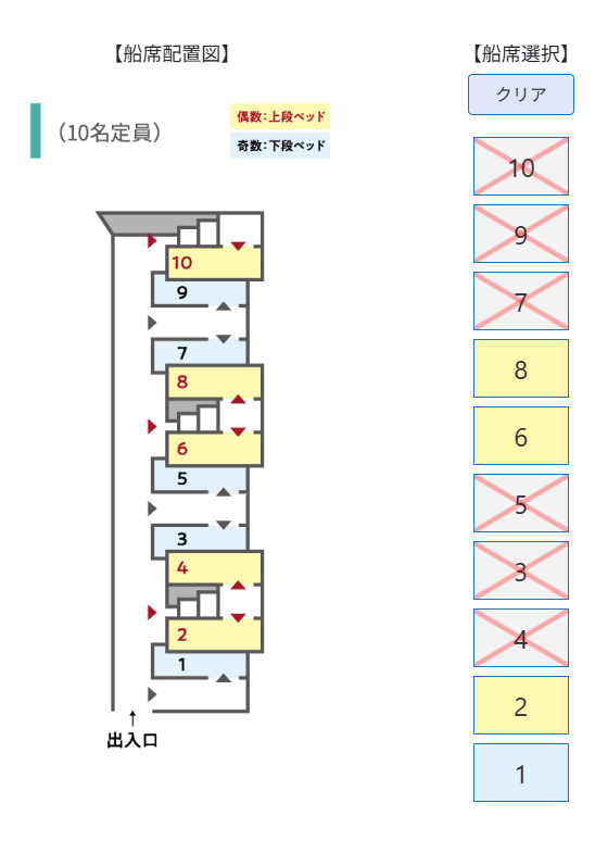 二段ベッド構造になっているとはいえ、上の人と下の人が対面でこんにちはするのではなく、上どうし・下どうしで向かい合わせになる感じです。