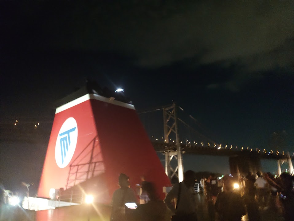 公式の瀬戸大橋の通過時刻は21:35だったので、15分前くらいにまたデッキの前でスタンバイしていました。