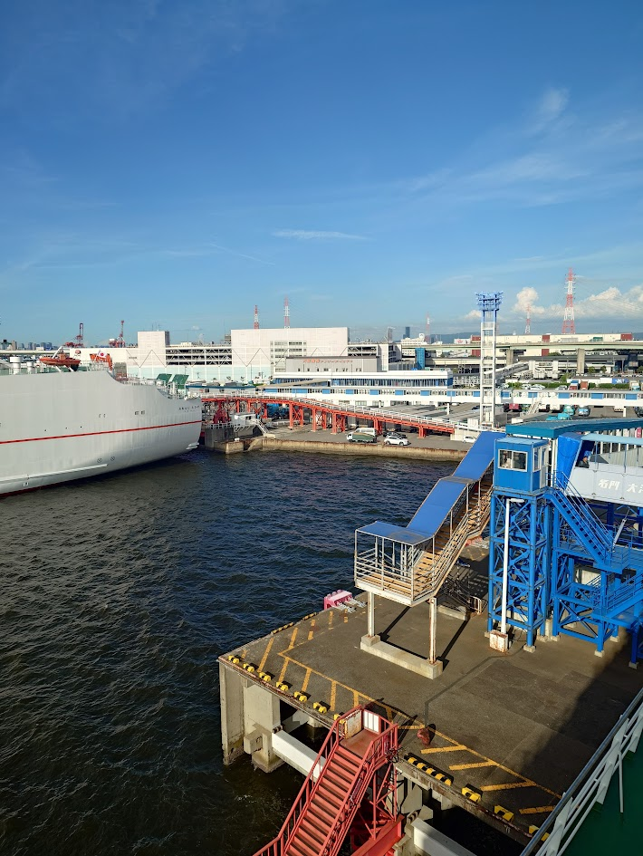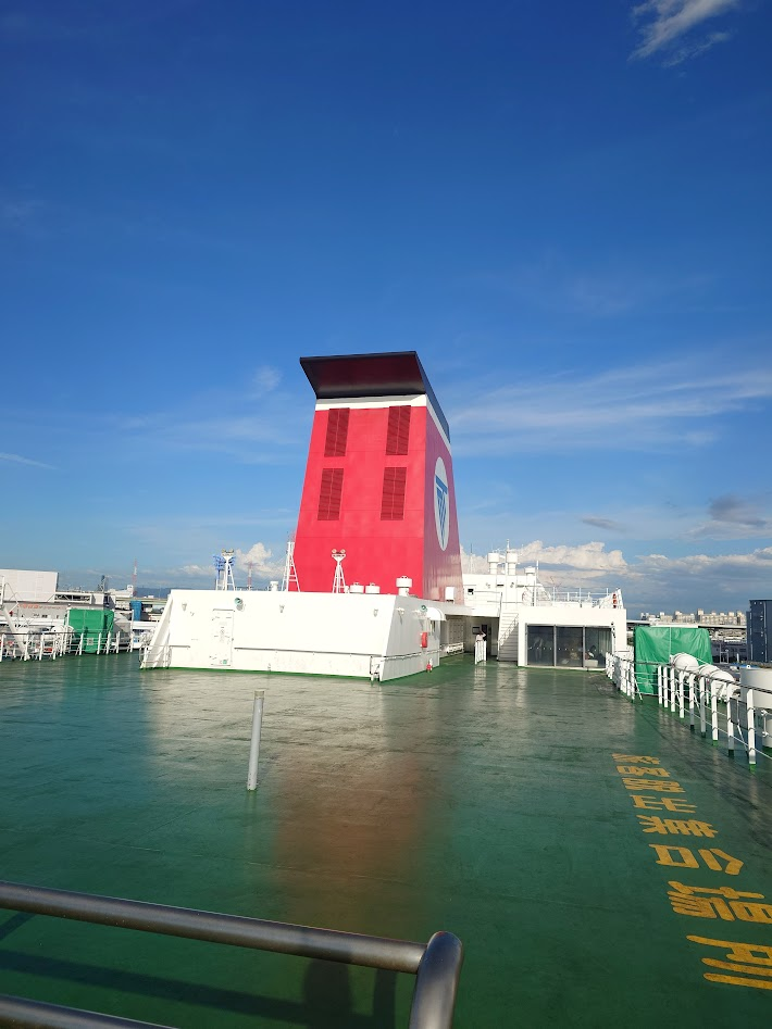 無事部屋に入り、予約したベッドで荷物を整理した後、出航まで時間があったため早速展望デッキに行ってみました。