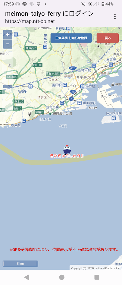 船内Wi-Fiにつなぐと、現在のおおよその位置情報もスマホで確認することができます。