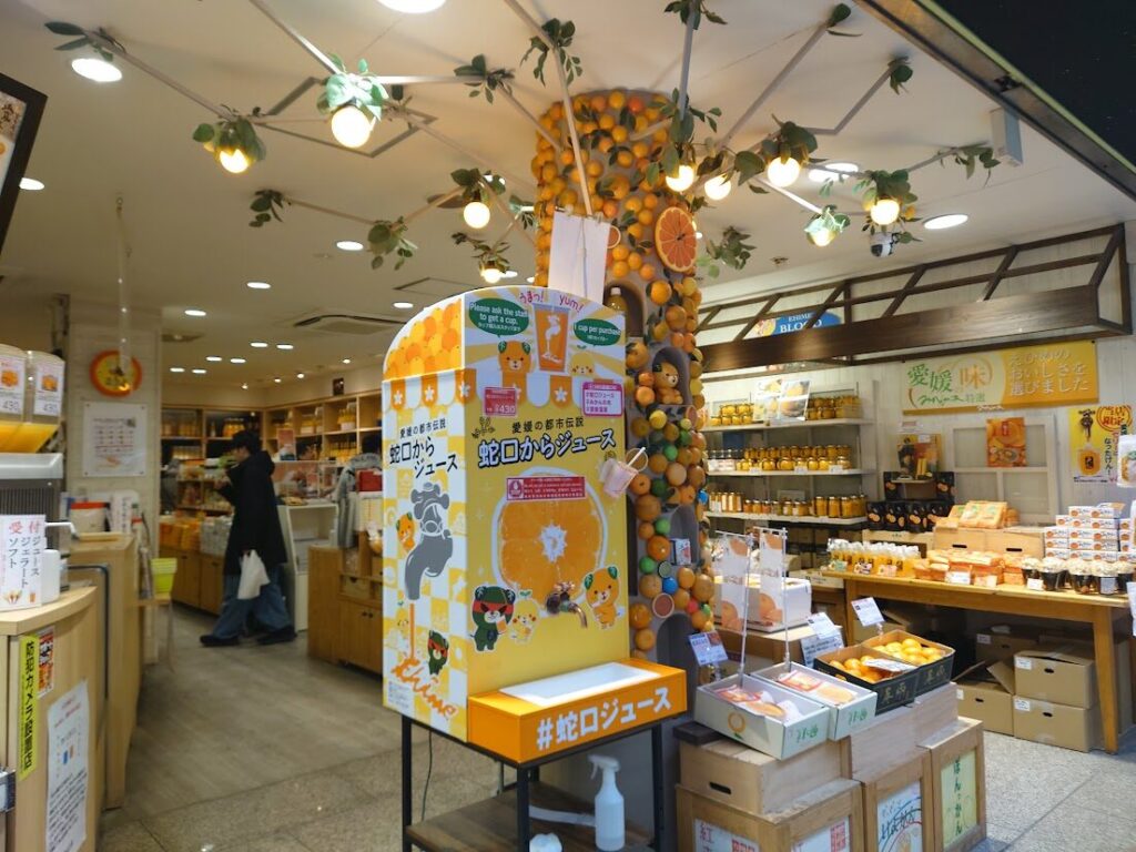 商店街を探索していると、名物の「蛇口からみかんジュース」もありました。