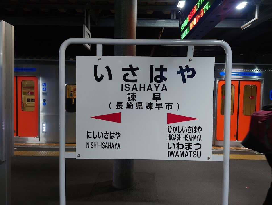 鳥栖を16:52発→江北を17:48発→諫早に19:11に着くのが、普通列車の最終便になります!